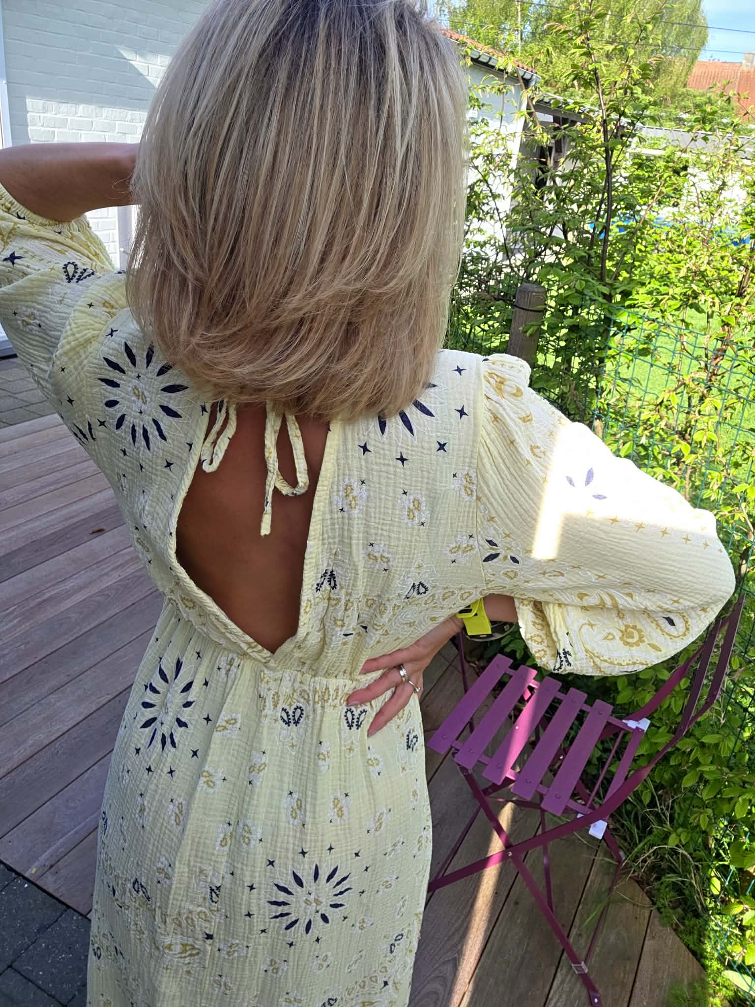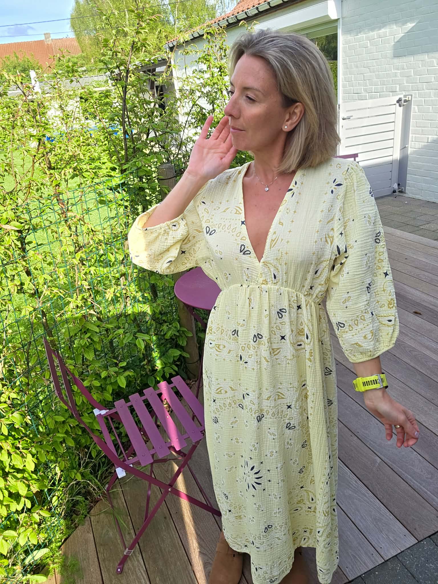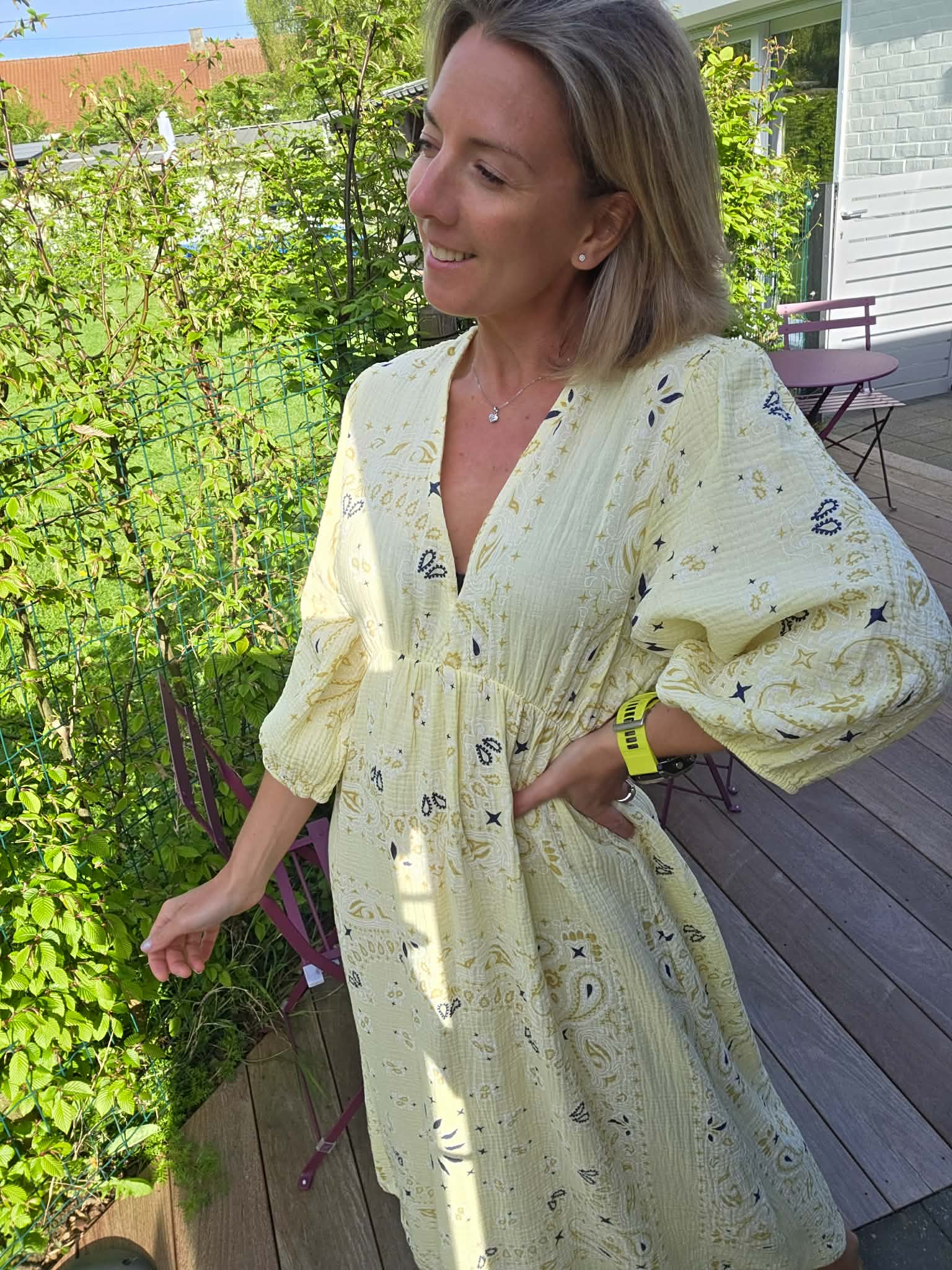 Robe gaze de coton imprimée – Jaune
