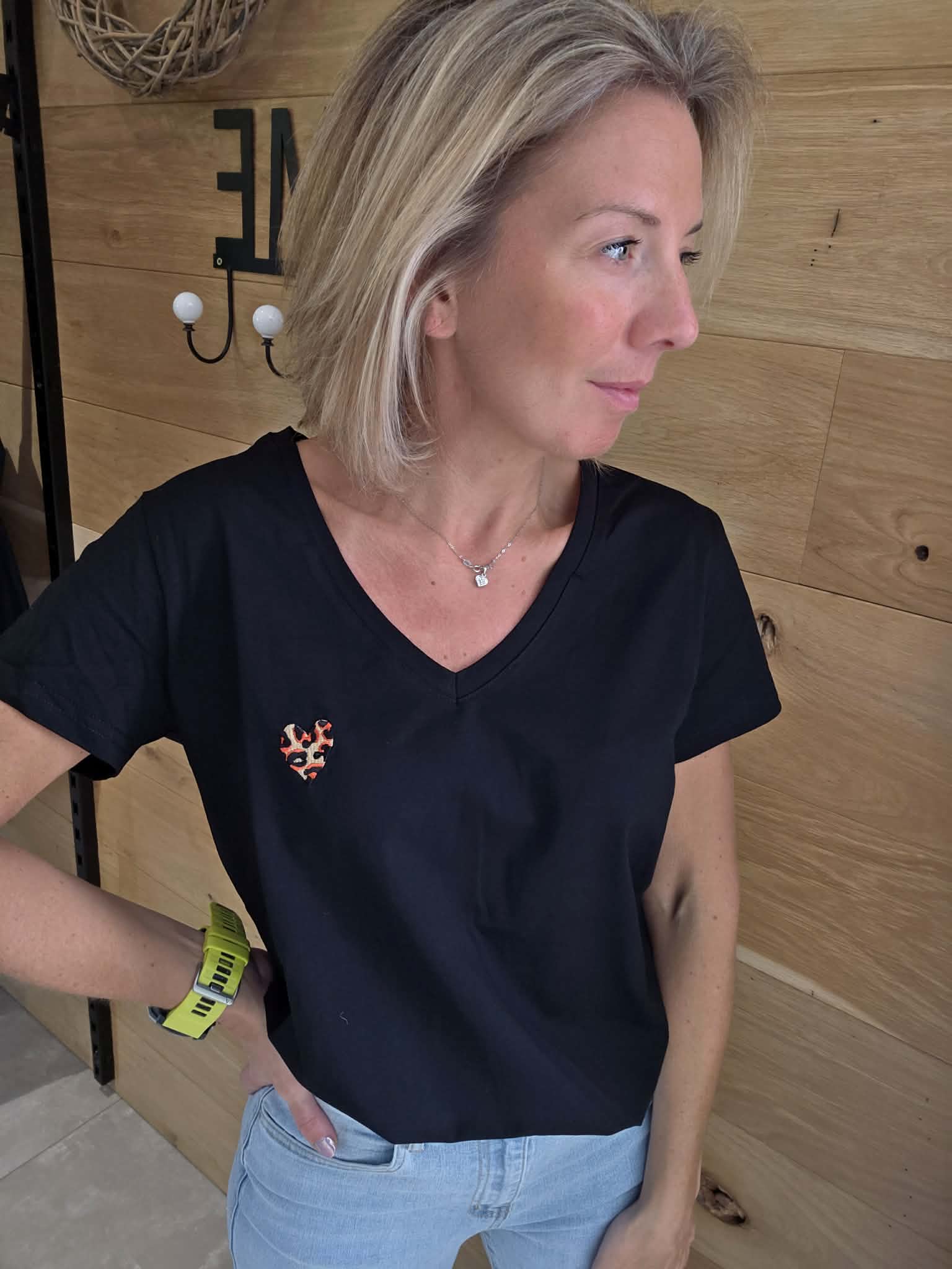 T-shirt Coeur/Léopard – Noir